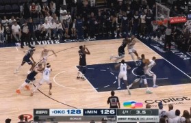 5月27日讯 西决G4,森林狼126-128惜败雷霆,大比分1-3落后。比赛最后出现了比较少见的一幕...