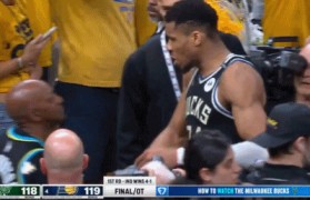 4月30日讯 雄鹿加时118-119惜败步行者,大比分1-4淘汰出局,比赛结束后字母哥和哈利伯顿的父...